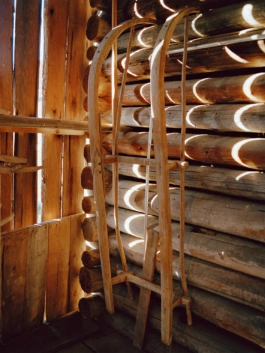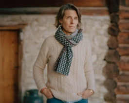 Portrait of designer Anne Scott in her carefully restored historic farmhouse, hidden in a remote valley in the mountains of Graubünden.